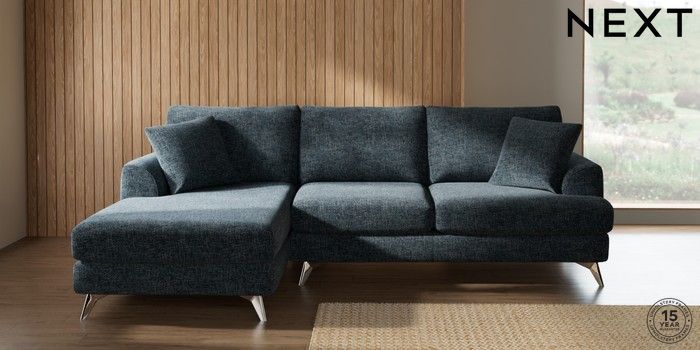 7.2.10 Buy Parker Medium Sofa Chaise - Left Hand Chunky Chenille Dark Navy Blue High Metal - Chrome from the Next UK online shop Click here to use our accessible website