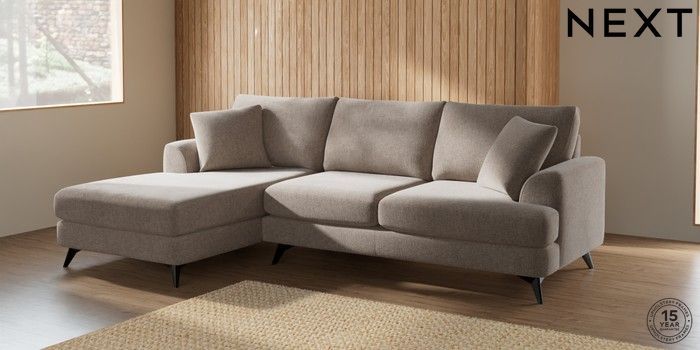 7.2.5 Buy Parker Medium Sofa Chaise - Left Hand Chunky Chenille Light Dove High Metal - Black from the Next UK online shop Click here to use our accessible website