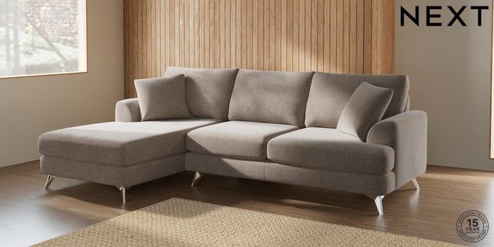 7.2.5 Buy Parker Medium Sofa Chaise - Left Hand Chunky Chenille Light Dove High Metal - Chrome from the Next UK online shop Click here to use our accessible website