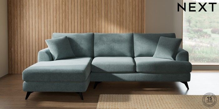 7.2.10 Buy Parker Medium Sofa Chaise - Left Hand Chunky Chenille Light Teal Green High Metal - Black from the Next UK online shop Click here to use our accessible website