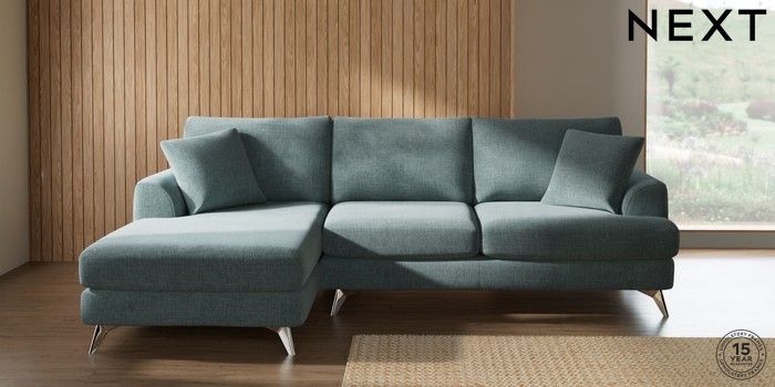 7.2.10 Buy Parker Medium Sofa Chaise - Left Hand Chunky Chenille Light Teal Green High Metal - Chrome from the Next UK online shop Click here to use our accessible website