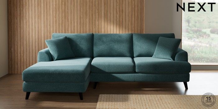 7.3.1 Buy Parker Medium Sofa Chaise - Left Hand Chunky Chenille Mid Teal Green Low Retro Tapered - Dark from the Next UK online shop Click here to use our accessible website
