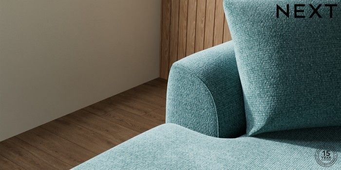 7.2.10 Buy Parker Medium Sofa Chaise - Left Hand Chunky Chenille Mid Teal Green Low Retro Tapered - Mid from the Next UK online shop Click here to use our accessible website