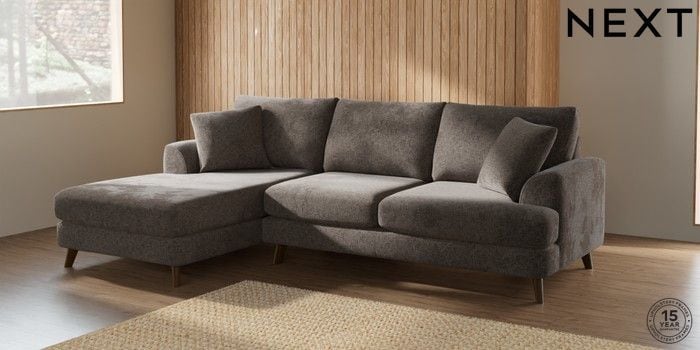 7.2.4 Buy Parker Medium Sofa Chaise - Left Hand Chunky Chenille Mink Brown Low Retro Tapered - Mid from the Next UK online shop Click here to use our accessible website