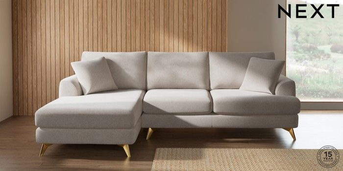 7.2.10 Buy Parker Medium Sofa Chaise - Left Hand Chunky Chenille Oyster High Metal - Brass from the Next UK online shop Click here to use our accessible website