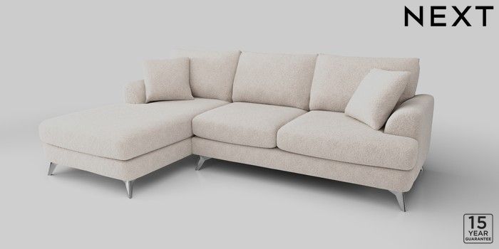 6.10.9 Buy Parker Medium Sofa Chaise - Left Hand Chunky Chenille Oyster High Metal - Chrome from the Next UK online shop Click here to use our accessible website