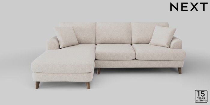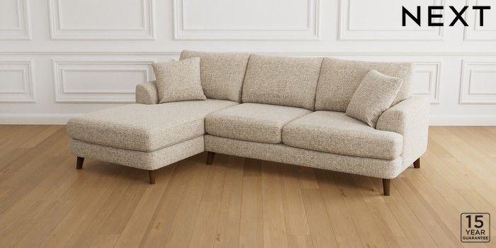 6.10.9 Buy Parker Medium Sofa Chaise - Left Hand Chunky Chenille Oyster Low Retro Tapered - Mid from the Next UK online shop Click here to use our accessible website