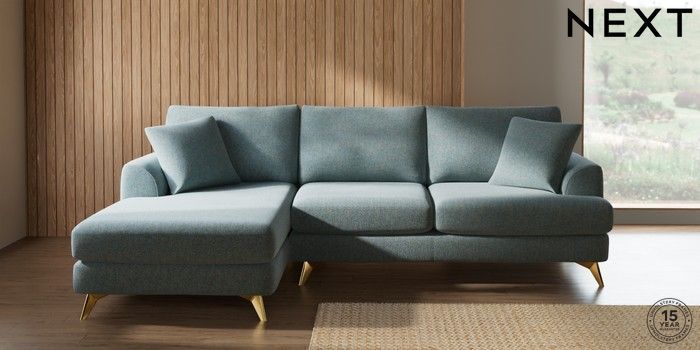 7.2.10 Buy Parker Medium Sofa Chaise - Left Hand Chunky Marl Mid Blue High Metal - Brass from the Next UK online shop Click here to use our accessible website