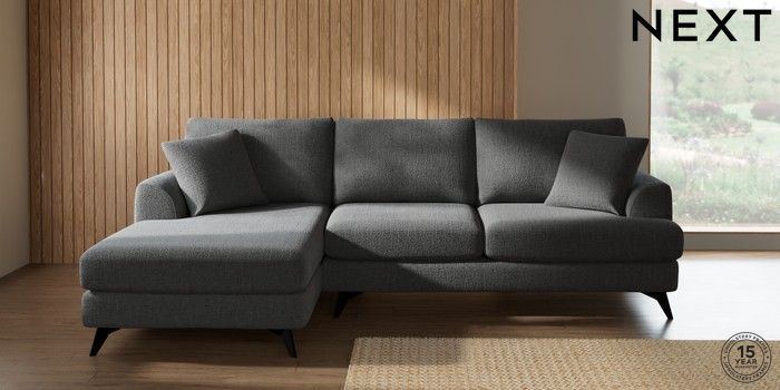 7.2.10 Buy Parker Medium Sofa Chaise - Left Hand Chunky Texture Dark Grey High Metal - Black from the Next UK online shop Click here to use our accessible website