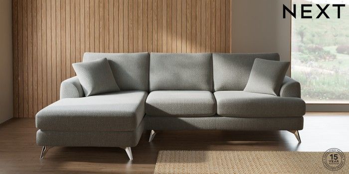 7.2.10 Buy Parker Medium Sofa Chaise - Left Hand Chunky Texture Dove High Metal - Chrome from the Next UK online shop Click here to use our accessible website