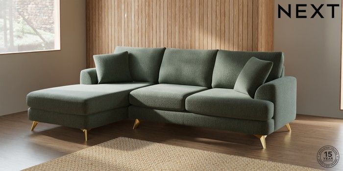 7.2.5 Buy Parker Medium Sofa Chaise - Left Hand Chunky Texture Mid Forest Green High Metal - Brass from the Next UK online shop Click here to use our accessible website
