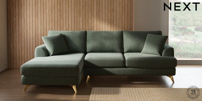 7.2.10 Buy Parker Medium Sofa Chaise - Left Hand Chunky Texture Mid Forest Green High Metal - Brass from the Next UK online shop Click here to use our accessible website
