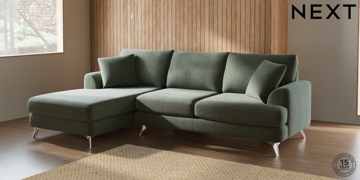 7.2.5 Buy Parker Medium Sofa Chaise - Left Hand Chunky Texture Mid Forest Green High Metal - Chrome from the Next UK online shop Click here to use our accessible website