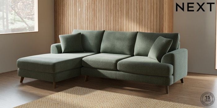 7.2.5 Buy Parker Medium Sofa Chaise - Left Hand Chunky Texture Mid Forest Green Low Retro Tapered - Mid from the Next UK online shop Click here to use our accessible website