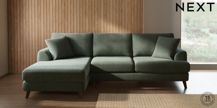 7.2.10 Buy Parker Medium Sofa Chaise - Left Hand Chunky Texture Mid Forest Green Low Retro Tapered - Mid from the Next UK online shop Click here to use our accessible website
