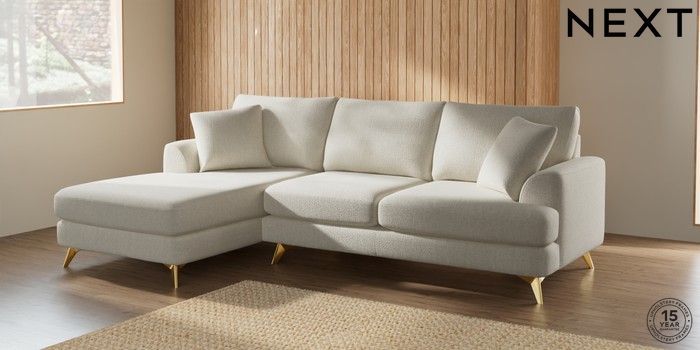 7.2.5 Buy Parker Medium Sofa Chaise - Left Hand Chunky Texture Oyster High Metal - Brass from the Next UK online shop Click here to use our accessible website
