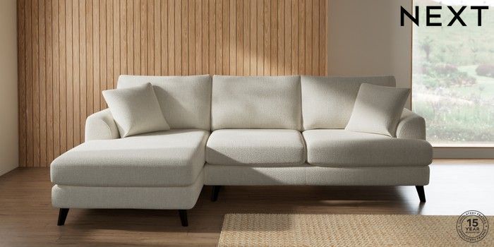 7.2.10 Buy Parker Medium Sofa Chaise - Left Hand Chunky Texture Oyster Low Retro Tapered - Dark from the Next UK online shop Click here to use our accessible website