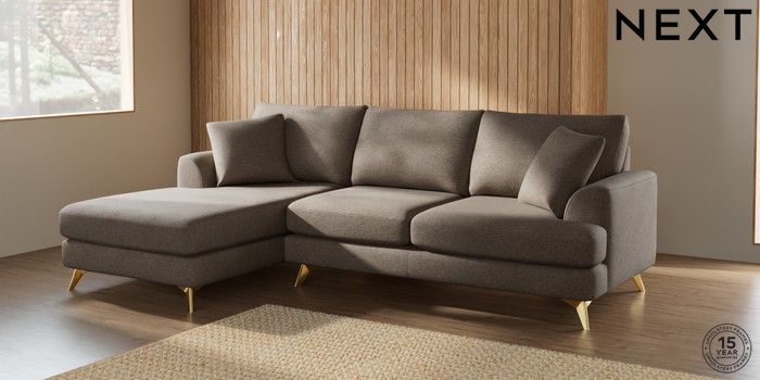 7.2.5 Buy Parker Medium Sofa Chaise - Left Hand Chunky Weave Dark Natural High Metal - Brass from the Next UK online shop Click here to use our accessible website