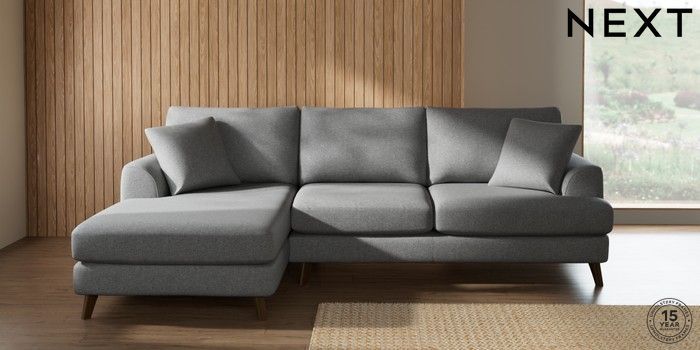 7.2.4 Buy Parker Medium Sofa Chaise - Left Hand Chunky Weave Mid Grey Low Retro Tapered - Mid from the Next UK online shop Click here to use our accessible website