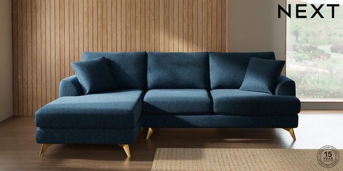 7.2.10 Buy Parker Medium Sofa Chaise - Left Hand Cotswold Chenille Dark Blue High Metal - Brass from the Next UK online shop Click here to use our accessible website