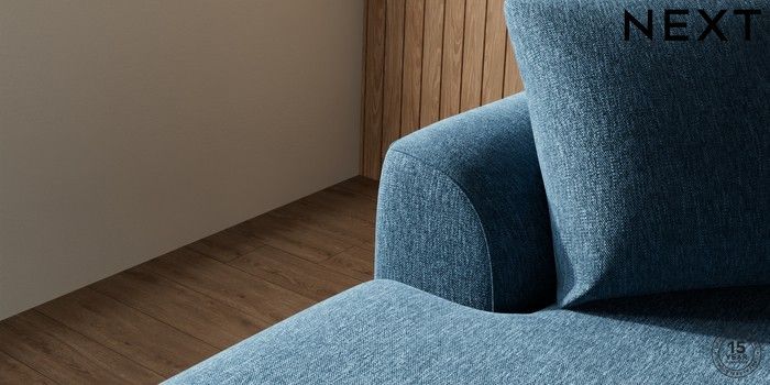 7.2.10 Buy Parker Medium Sofa Chaise - Left Hand Cotswold Chenille Dark Blue Low Retro Tapered - Light from the Next UK online shop Click here to use our accessible website