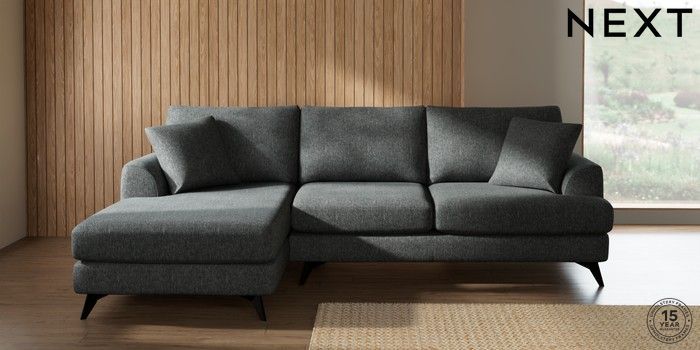 7.2.10 Buy Parker Medium Sofa Chaise - Left Hand Cotswold Chenille Dark Grey High Metal - Black from the Next UK online shop Click here to use our accessible website