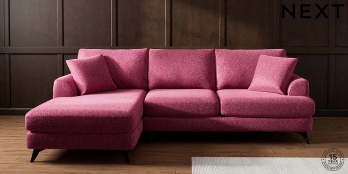 7.2.10 Buy Parker Medium Sofa Chaise - Left Hand Cotswold Chenille Dark Raspberry Pink High Metal - Black from the Next UK online shop Click here to use our accessible website