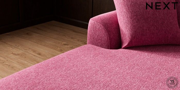 7.2.5 Buy Parker Medium Sofa Chaise - Left Hand Cotswold Chenille Dark Raspberry Pink Low Retro Tapered - Light from the Next UK online shop Click here to use our accessible website
