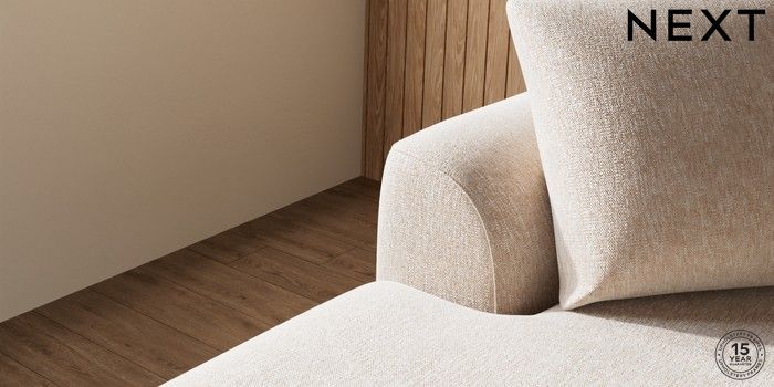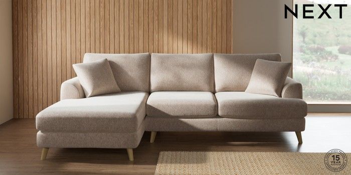 7.2.10 Buy Parker Medium Sofa Chaise - Left Hand Cotswold Chenille Light Natural Low Retro Tapered - Light from the Next UK online shop Click here to use our accessible website