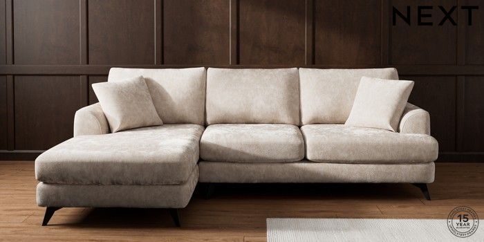 7.2.10 Buy Parker Medium Sofa Chaise - Left Hand Distressed Velour Mid Natural High Metal - Black from the Next UK online shop Click here to use our accessible website