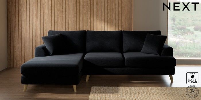 7.2.10 Buy Parker Medium Sofa Chaise - Left Hand Fine Chenille Easy Clean Black Low Retro Tapered - Light from the Next UK online shop Click here to use our accessible website