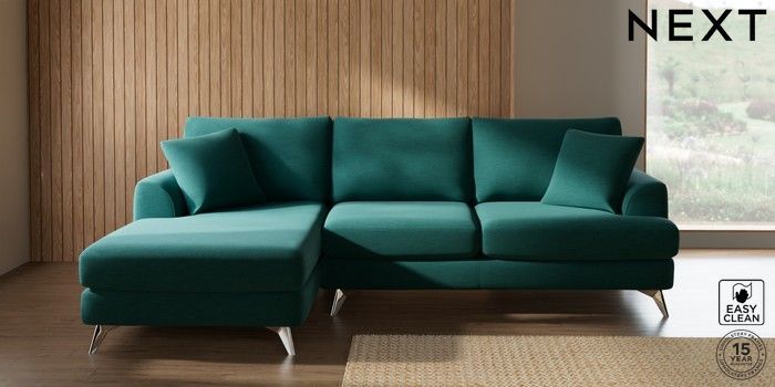 7.2.10 Buy Parker Medium Sofa Chaise - Left Hand Fine Chenille Easy Clean Dark Juniper Green High Metal - Chrome from the Next UK online shop Click here to use our accessible website