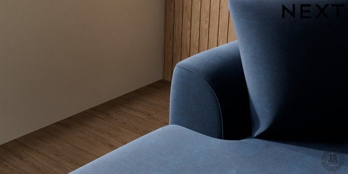 7.2.10 Buy Parker Medium Sofa Chaise - Left Hand Fine Chenille Easy Clean Dark Navy Blue High Metal - Chrome from the Next UK online shop Click here to use our accessible website