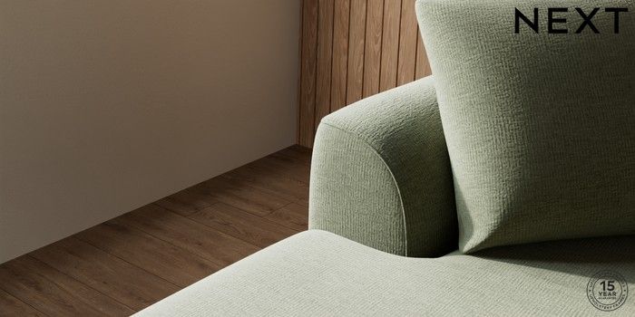 7.2.10 Buy Parker Medium Sofa Chaise - Left Hand Ripple Chenille Mid Moss Green Low Retro Tapered - Mid from the Next UK online shop Click here to use our accessible website