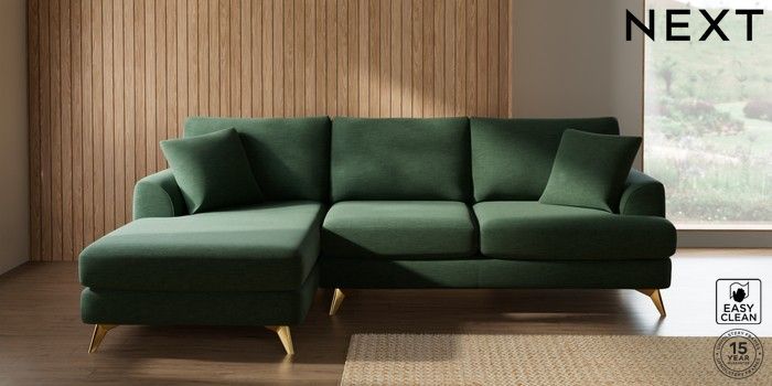 7.2.10 Buy Parker Medium Sofa Chaise - Left Hand Fine Chenille Easy Clean Mid Khaki Green High Metal - Brass from the Next UK online shop Click here to use our accessible website