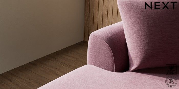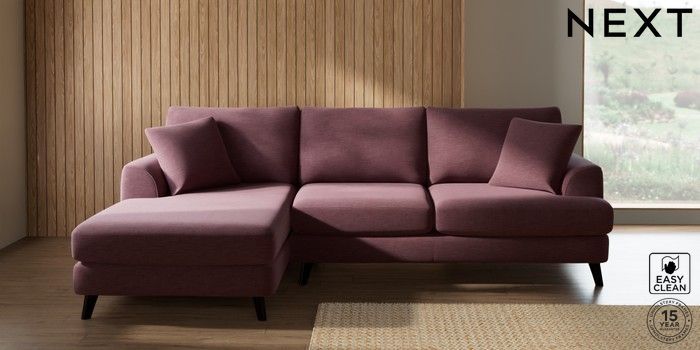 7.3.1 Buy Parker Medium Sofa Chaise - Left Hand Fine Chenille Easy Clean Mid Mulberry Purple Low Retro Tapered - Dark from the Next UK online shop Click here to use our accessible website