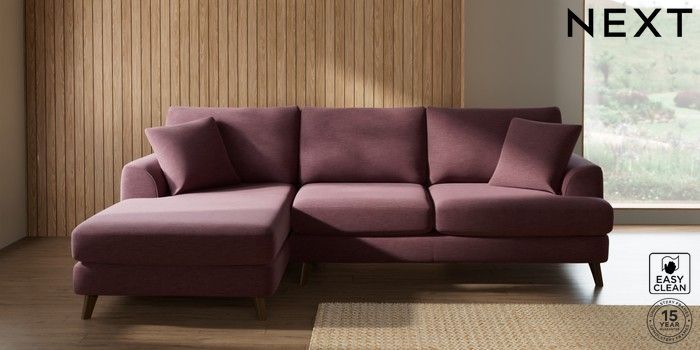 7.3.1 Buy Parker Medium Sofa Chaise - Left Hand Fine Chenille Easy Clean Mid Mulberry Purple Low Retro Tapered - Mid from the Next UK online shop Click here to use our accessible website