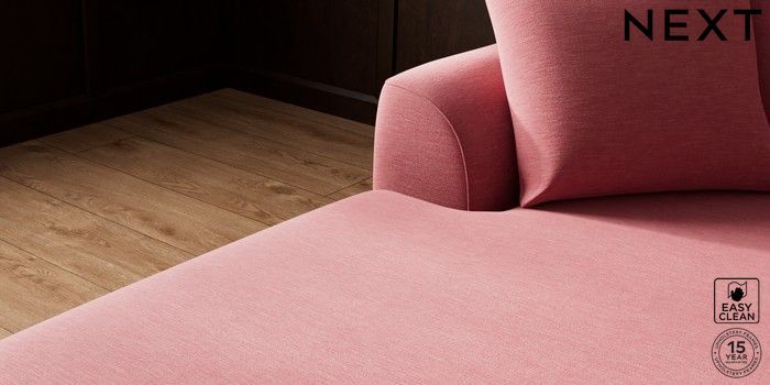 7.2.10 Buy Parker Medium Sofa Chaise - Left Hand Fine Chenille Easy Clean Mid Pink Low Retro Tapered - Mid from the Next UK online shop Click here to use our accessible website