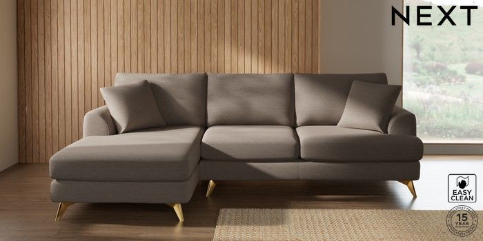 7.3.1 Buy Parker Medium Sofa Chaise - Left Hand Fine Chenille Easy Clean Mid Taupe Brown High Metal - Brass from the Next UK online shop Click here to use our accessible website