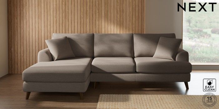 7.3.1 Buy Parker Medium Sofa Chaise - Left Hand Fine Chenille Easy Clean Mid Taupe Brown Low Retro Tapered - Mid from the Next UK online shop Click here to use our accessible website