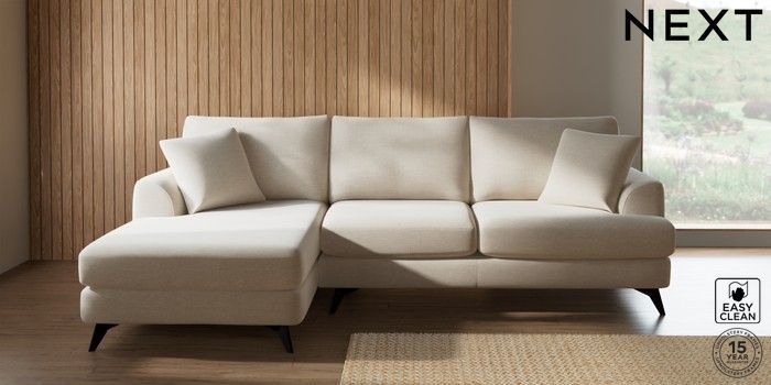 7.2.10 Buy Parker Medium Sofa Chaise - Left Hand Fine Chenille Easy Clean Oyster High Metal - Black from the Next UK online shop Click here to use our accessible website
