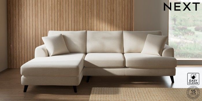 7.2.10 Buy Parker Medium Sofa Chaise - Left Hand Fine Chenille Easy Clean Oyster Low Retro Tapered - Dark from the Next UK online shop Click here to use our accessible website