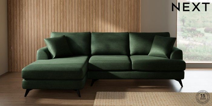 7.2.10 Buy Parker Medium Sofa Chaise - Left Hand Luxe Chenille Dark Green High Metal - Black from the Next UK online shop Click here to use our accessible website