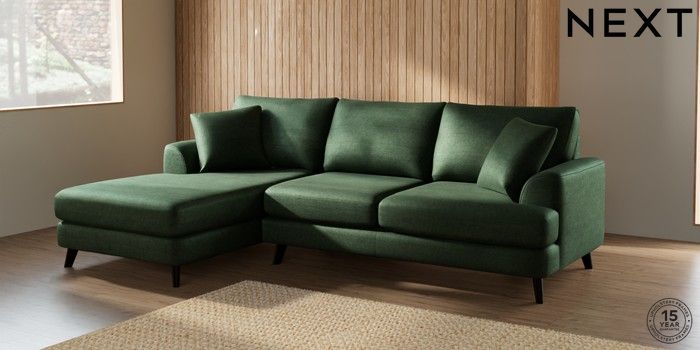 7.0.3 Buy Parker Medium Sofa Chaise - Left Hand Luxe Chenille Dark Green Low Retro Tapered - Dark from the Next UK online shop Click here to use our accessible website
