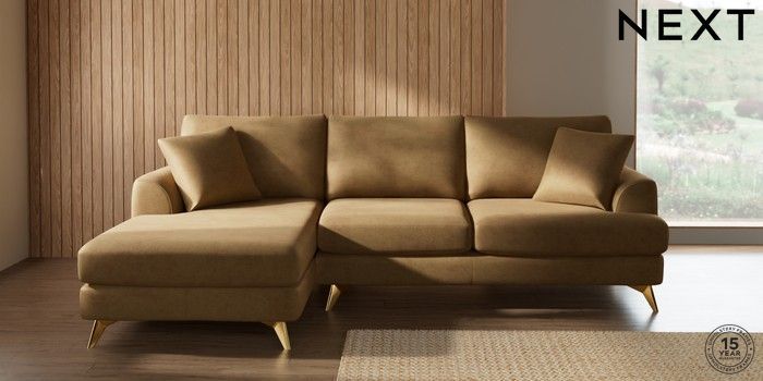 7.0.3 Buy Parker Medium Sofa Chaise - Left Hand Luxe Chenille Honey Yellow High Metal - Brass from the Next UK online shop Click here to use our accessible website