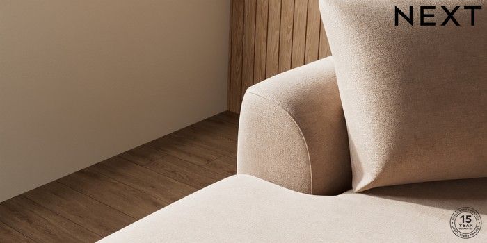 7.2.10 Buy Parker Medium Sofa Chaise - Left Hand Luxe Chenille Mid Natural High Metal - Chrome from the Next UK online shop Click here to use our accessible website