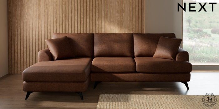 7.3.1 Buy Parker Medium Sofa Chaise - Left Hand Monza Faux Leather Easy Clean Chestnut Brown High Metal - Black from the Next UK online shop Click here to use our accessible website