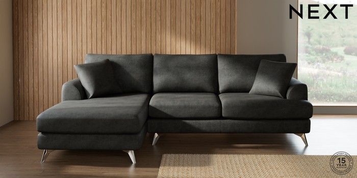 7.3.1 Buy Parker Medium Sofa Chaise - Left Hand Monza Faux Leather Easy Clean Dark Grey High Metal - Chrome from the Next UK online shop Click here to use our accessible website