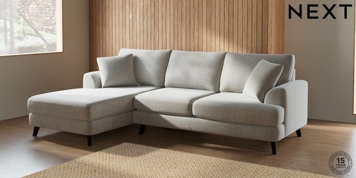 7.2.6 Buy Parker Medium Sofa Chaise - Left Hand Multi Weave Light Blue Low Retro Tapered - Dark from the Next UK online shop Click here to use our accessible website