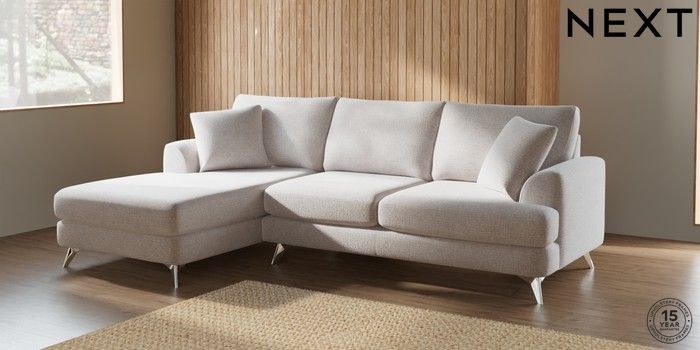 7.2.6 Buy Parker Medium Sofa Chaise - Left Hand Multi Weave Oyster High Metal - Chrome from the Next UK online shop Click here to use our accessible website
